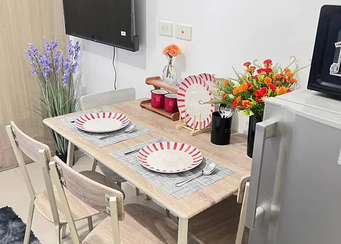 プライベートなプールを提供するベッドルーム1室のUnistay Shore Res With Bal Manila Bay View Nr Moaアパートは、Smモール・オブ・アジアから歩いて19分に位置しています。 ビジネスやレジャーのお客様のニーズに合わせて、Wi-Fiを提供しています。